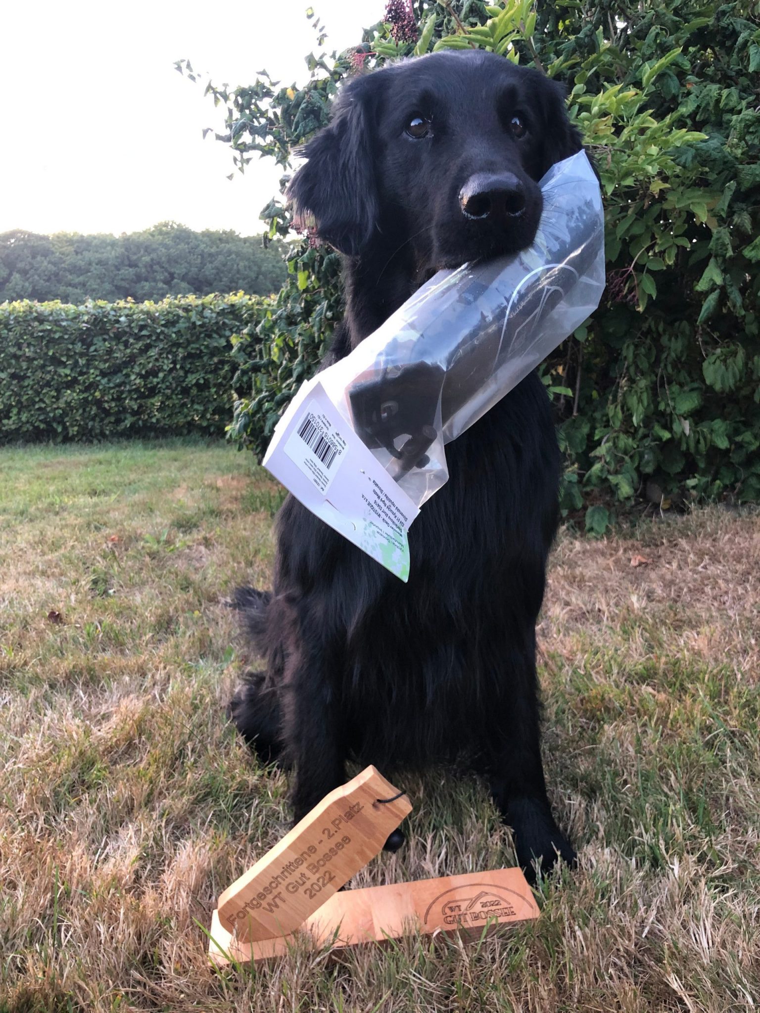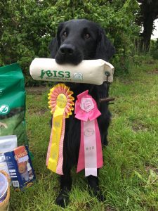 Samstag fand der Workingtest statt, Sonntag die Show. Weil ich dual purpose für unsere Rasse so wichtig finde, habe ich natürlich beide Veranstaltungen gemeldet. Und wurde dafür belohnt: durch den 1. Platz bei den Fortgeschrittenen am Samstag und einem „vorzüglich“ in der Offenen Klasse am Sonntag konnten wir doch tatsächlich die FlatTrophy 2019 gewinnen! Ich bin sehr stolz auf Aki, der jetzt auch offiziell ein richtiger Dual Purpose-Hund ist.