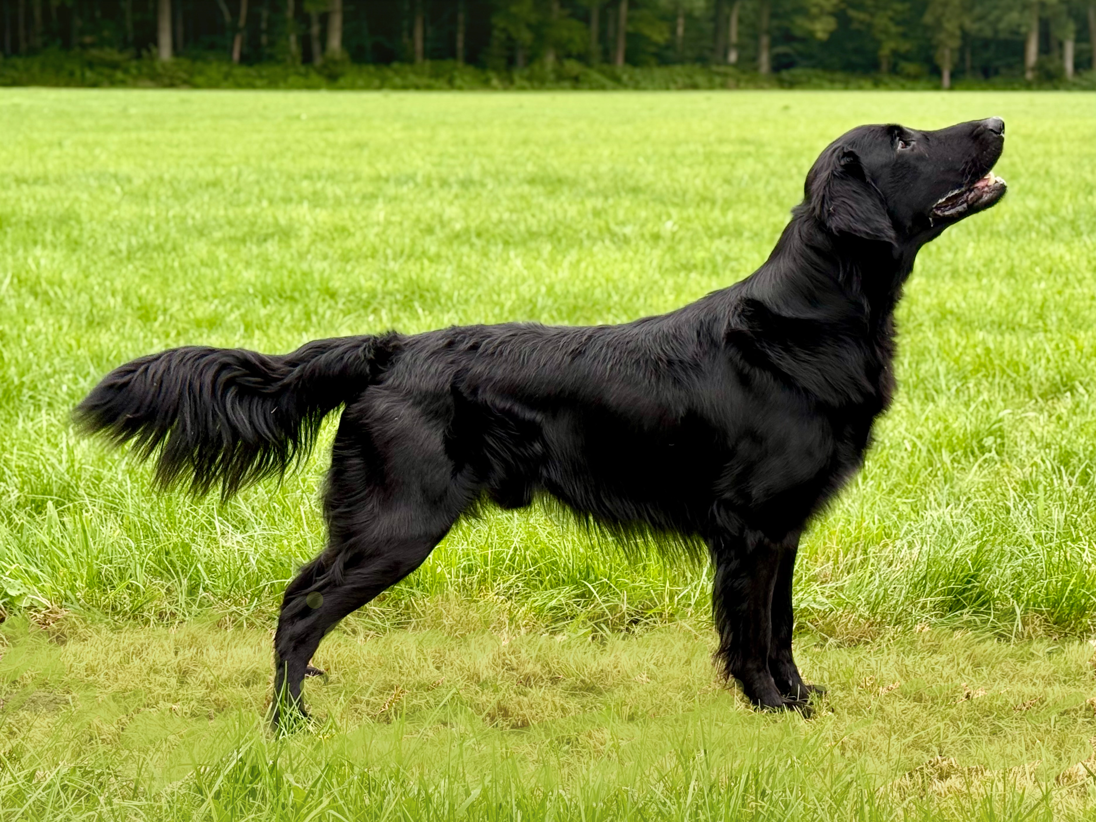 1,5 jähriger Rüde mit rassetypischem Kopf, korrekter Halslänge und oberer Linie, korrekte Winkelungen mit Vorbrust und Brusttiefe, vorzügliche Fellanlage, korrekte Knochenstärke, bewegt sich mit viel Schub, rassetypisches Temperament.